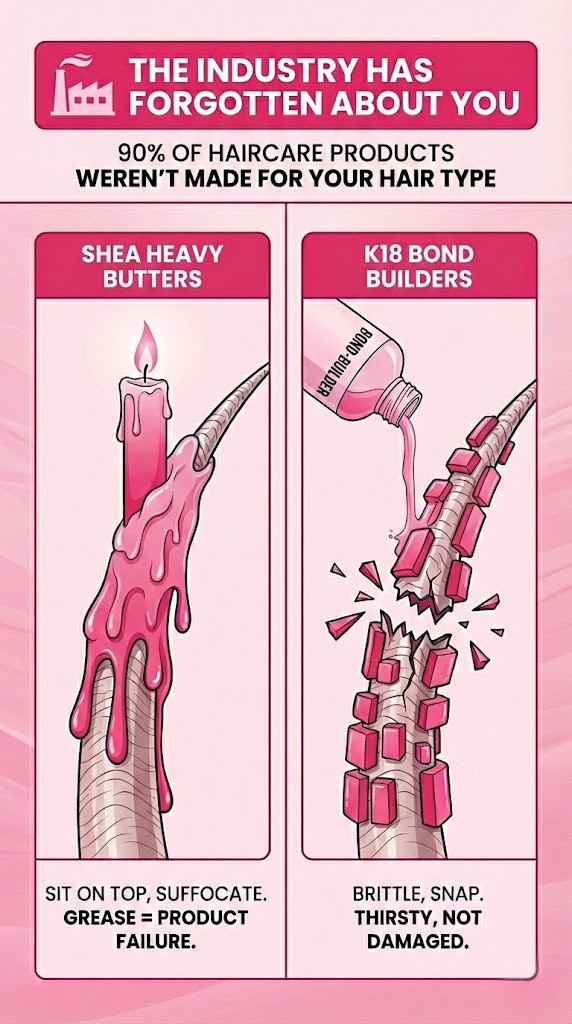 You’ve been forced to choose between "Heavy Grease" (Shea Butters) or "Brittle Straw" (Bond Builders). Stop using products designed for a hair type you don't have